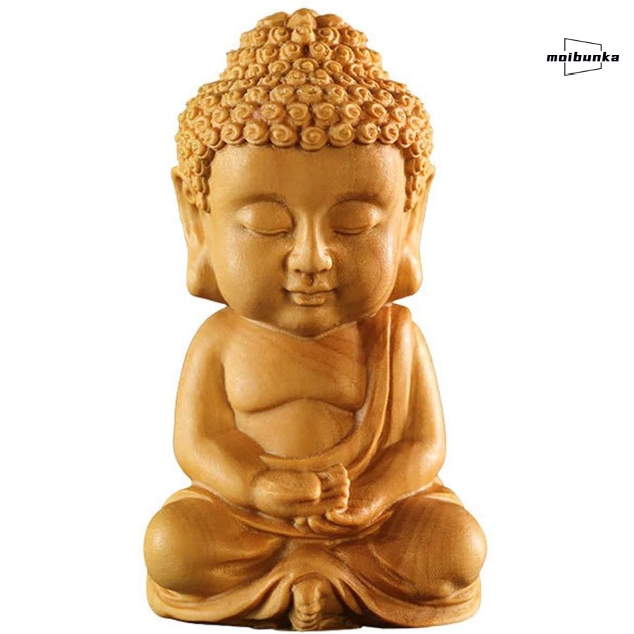 ミニチュア仏像 木彫り ミニ 釈迦像 如来 可愛い 手作り 木置物 禅定 ブッダ 仏陀 小型 柘植の木 木目 インテリア ギフト (高さ6.9cm×巾4cm×奥行3cm)