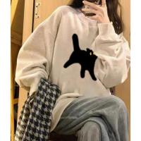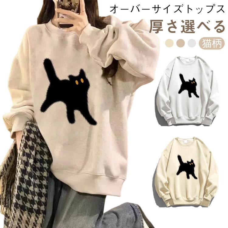 オーバーサイズ ビッグシルエット 可愛い トップス レディース トレーナー プルオーバー スウェット 猫 ねこ ネコ ゆったり 大きサイズ 春服 部屋