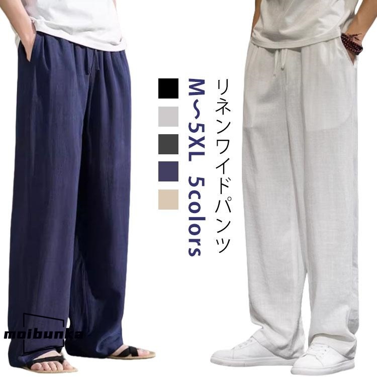 麻 パンツ メンズ イージーパンツ リネン ワイドパンツ 綿麻 ズボン 涼しい ルームウェア ボ 吸水速乾 夏 ロングパンツ ウエストゴム 部屋