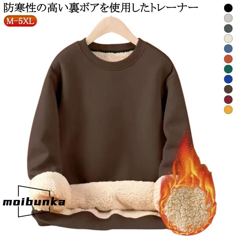 ふわふわ 防寒 トップス レディース 裏ボア 厚手 暖かい スウェット 秋冬 プルオーバー パーカー ボア シンプル クルーネック 裏ボア トレーナー
