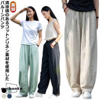 綿麻 きれいめ パンツ レディース 夏 パンツ 薄手 涼しい 快適 軽い 体型カバー 美脚 ナチュラル バルーンパンツ コットンリネン 春 夏 秋 ワ