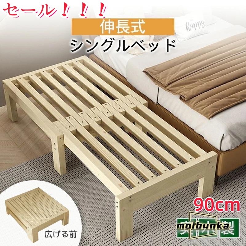 伸長式ベッド シングルベッド 天然木 無垢材 松木 フレーム スポンジマットレス付き すのこベッド ベッド 折りたたみ 伸張 伸縮 省スペース 耐久性 頑丈 厚み