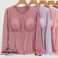 締め付けない胸パッド付き 授乳服 トップス 授乳Tシャツ 長袖 部屋着 ルームウェア インナー 着丈 長め マタニティ 授乳しやすい Tシャツ ママ