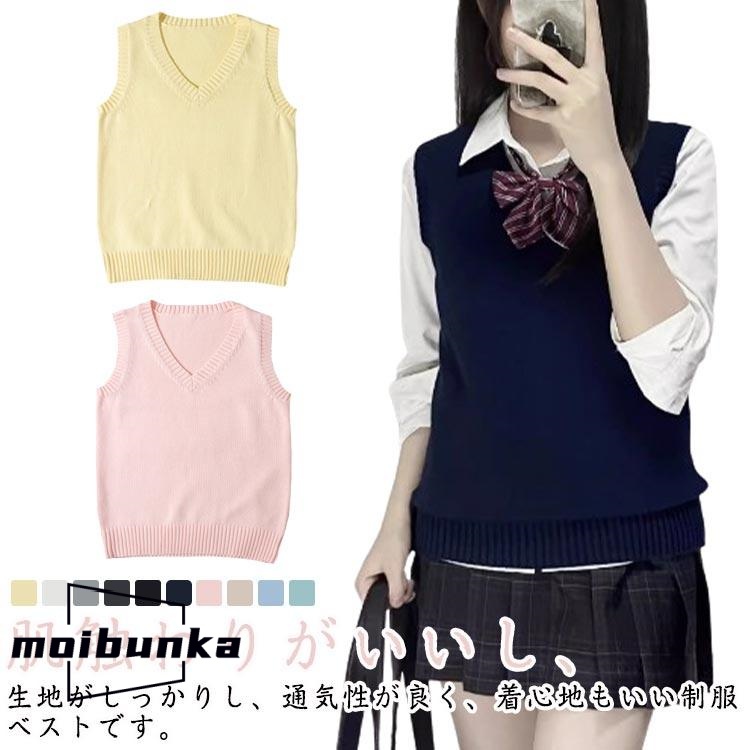 スクールベスト Vネック セーター ニット ベスト ニットベスト 女子高校生 通年 チョッキ 無地 女子 制服 春夏 秋冬 可愛い 通学 スクールベス