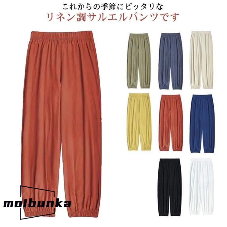 サルエルパンツ レディース リネン調 パンツ 9分丈 綿麻 リラックス パンツ イージーパンツ ウェストゴム 体型カバー 無地 大きいサイズ ルームウ