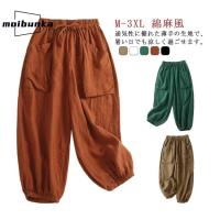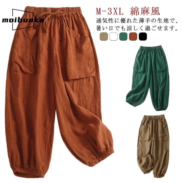 バルーンパンツ 綿麻風 コクーンパンツ 大きいサイズ ゆったり サルエルパンツ レディース 夏 リネン 麻 パンツ サーカスパンツ クロップトパンツ