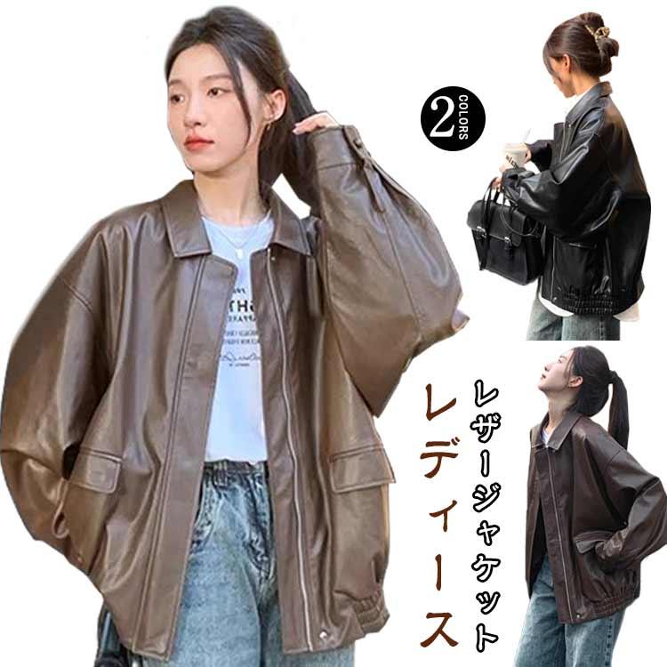 レディース ブルゾン 革ジャン 革ジャン ジャケット コート フェイクレザー きれいめ ジップアップ 合皮 ライダース オーバーサイズ 秋 冬 ブラッ