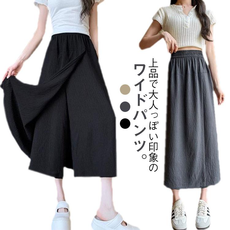 美脚パンツ ゆったり クロップドパンツ きれいめ レディース 薄手 7分丈 体型カバー 秋 ワイドパンツ ワイド キュロット スカート キュロット カ