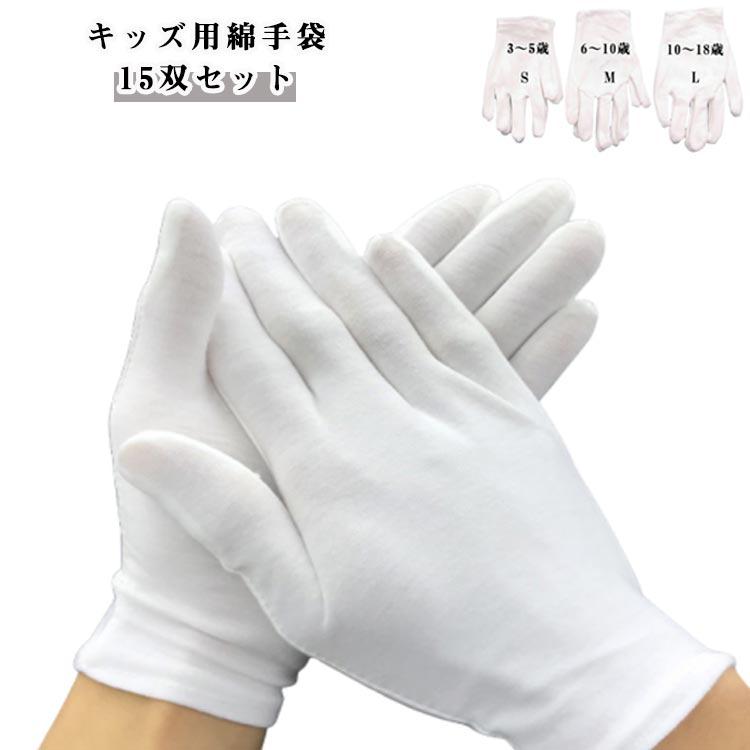 保湿手袋 爪噛み対策 キッズ 白手袋 子供 15双セット 小学生 綿 手袋 綿手袋 かきむしり対策 手荒れ 幼児 キッズ 寝る時 子供 防止 S M