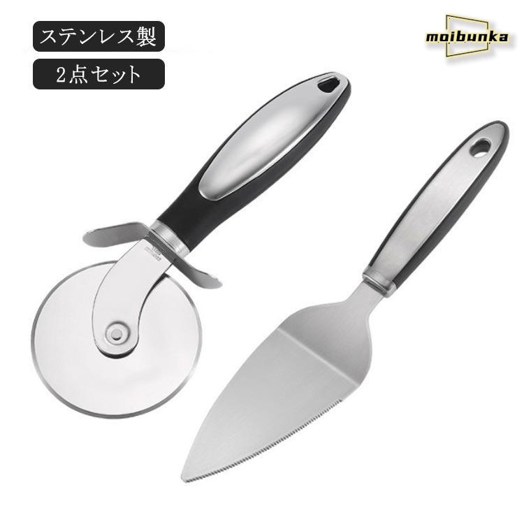 使いやすい 【2点セット】ピザカッター 調理器具 ピザナイフ ケーキ/パイをカットして取り分け ケーキナイフ ステンレス製 ピザサーバー 業務用 家