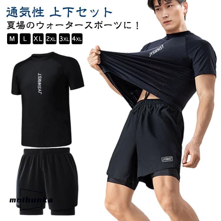 M-4XL!上下セット 水着 メンズ ラッシュガード フィットネス セパレート 半袖 水泳 水陸両用 吸湿速乾 サーフパンツ インナー付き メッシュ