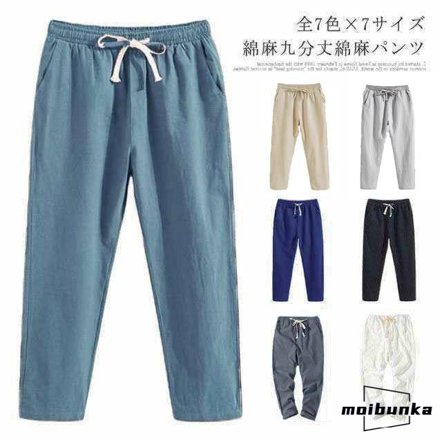 綿麻パンツ 9分丈 メンズ ボ リネンパンツ サルエルパンツ 綿麻 リネン パンツ 麻パン テーパードパンツ イージーパンツ ロングパンツ リラ