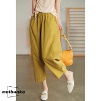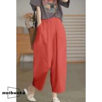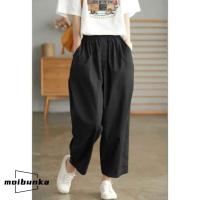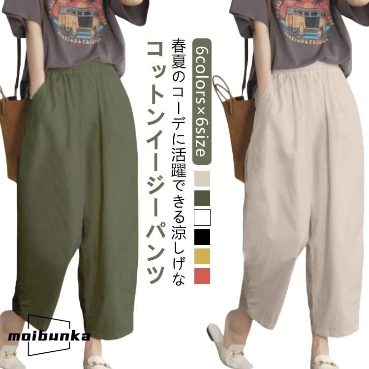 クロップドパンツ サルエルパンツ レディース パンツ 9分丈 ボ 綿 コットン ゆったり ウエストゴム イージーパンツ 大きいサイズ 無地 夏服