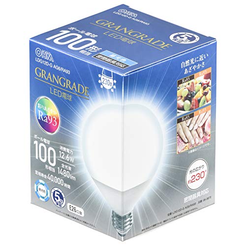 オーム電機 LED電球 ボール電球形 E26 100形相当 昼光色 LDG12D-G AG6/RA93 06-3870 OHM