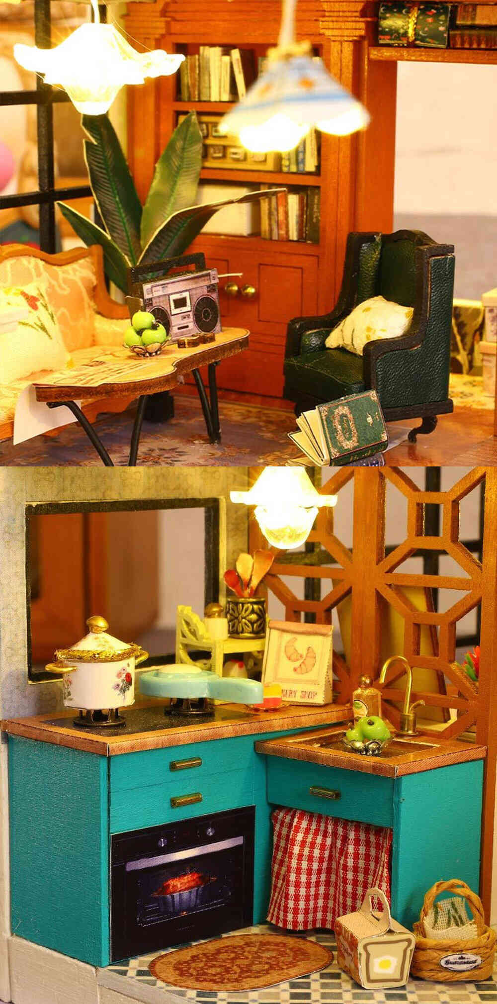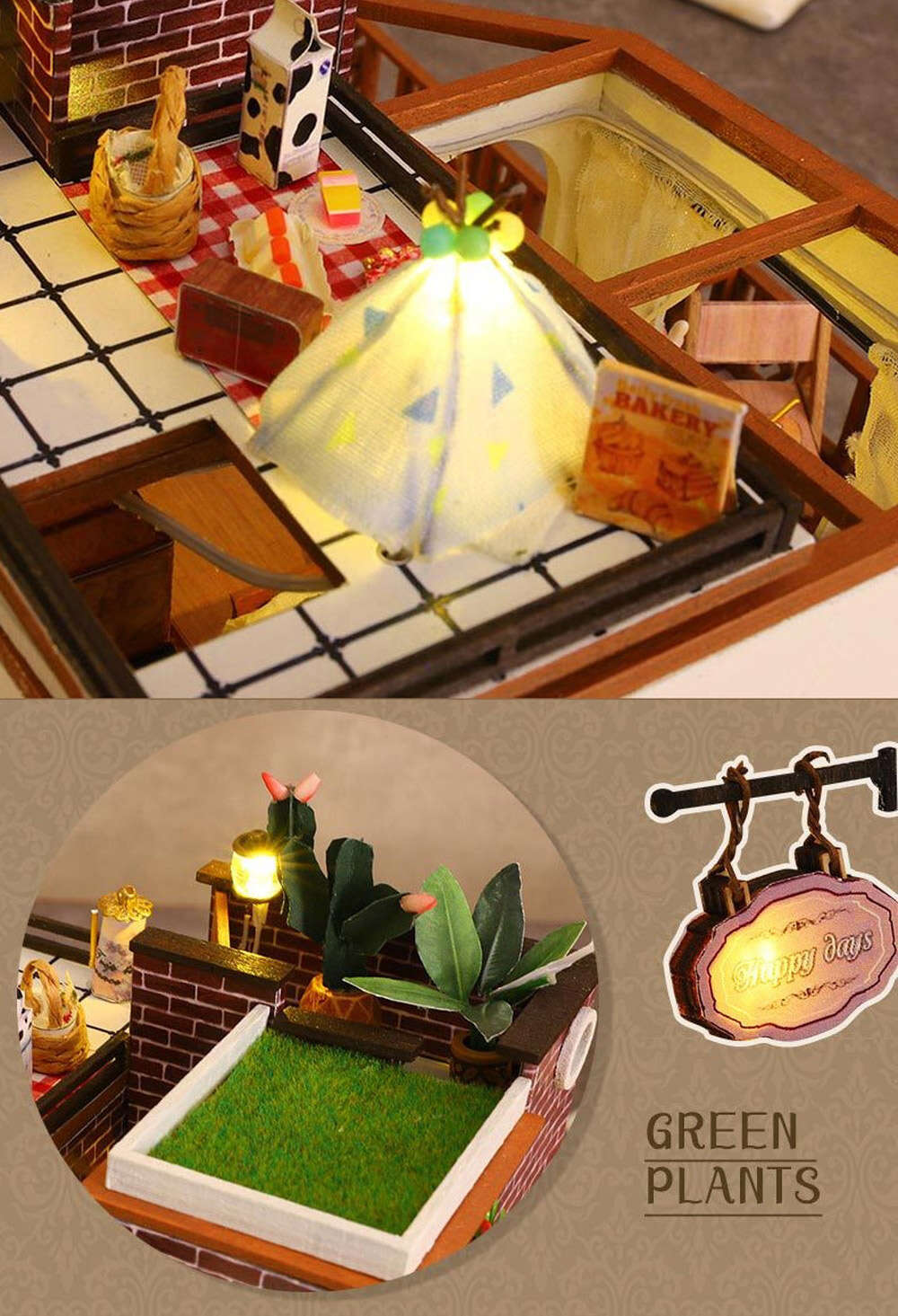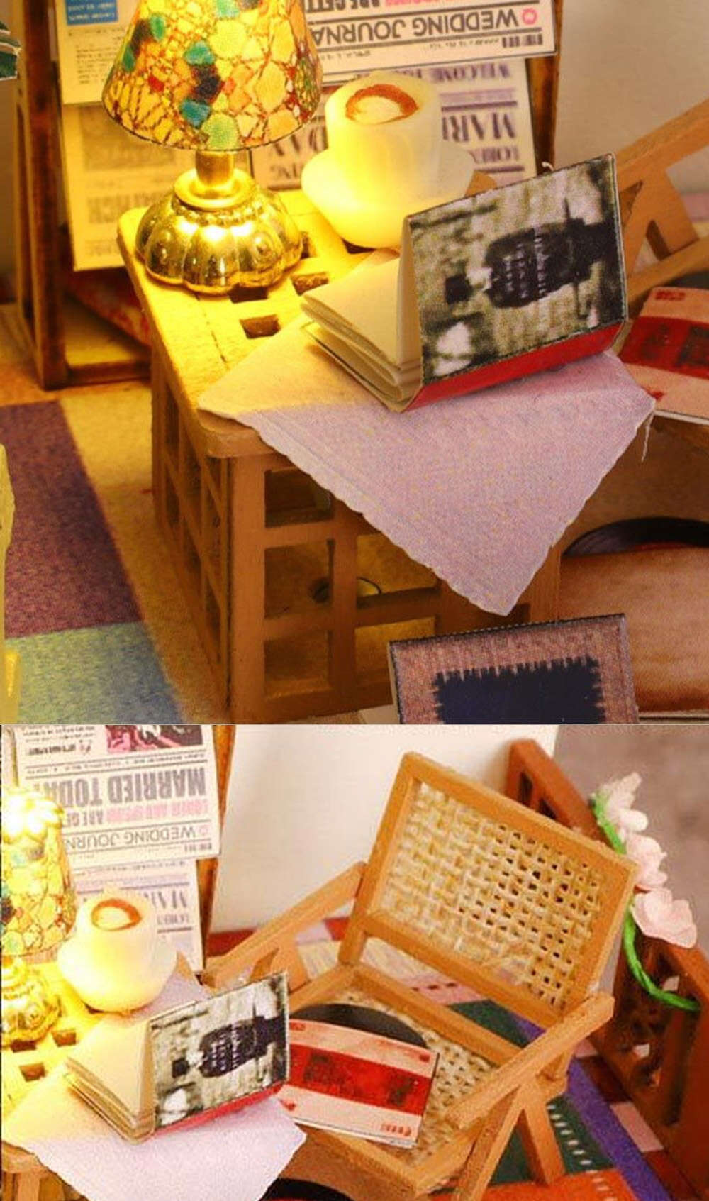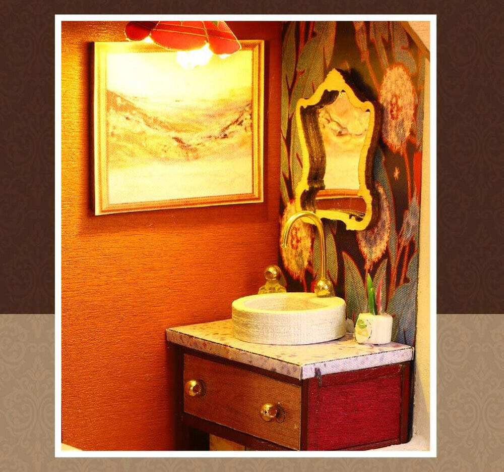 ドールハウス ミニチュア 手作りキット セット 英語説明書 アンティーク レトロ レンガ 赤 郵便ポスト 猫 テディベア 屋上|LEDライト+アクリルケース+フ