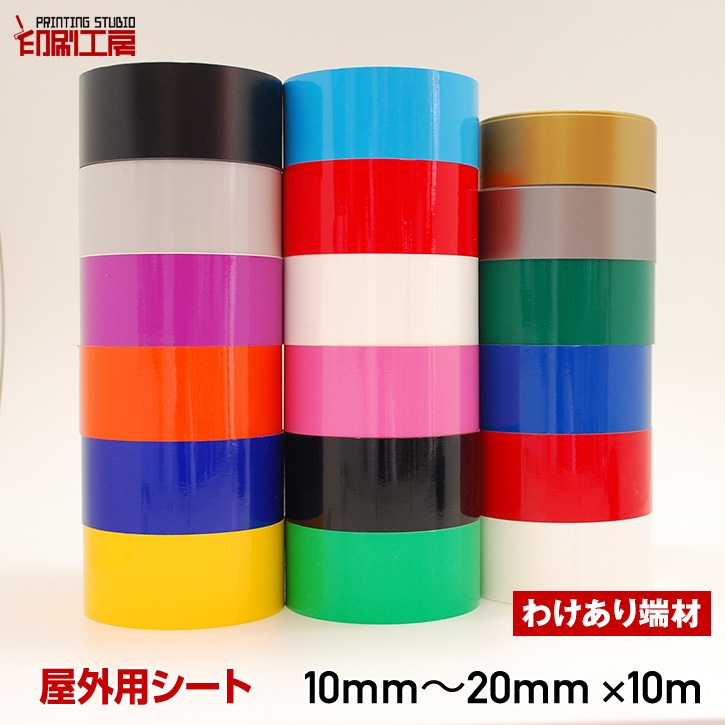 色 | 白 ホワイト、艶消し白 マットホワイト、黒 ブラック、艶消し黒 マットブラック、灰 グレー、赤 レッド、赤W レッドW(裏白)、橙W オレンジW(裏白)、黄W イエローW(裏白)、黄緑 ライトグリーン、緑 グリーン、空 スカイブルー、青 ブルー、青W ブルーW(裏白)、桃 ピンク、紫 パープル、金 ゴールド、銀 シルバーの全18色 ※Wの付いた物は裏面の糊が白になります。 |