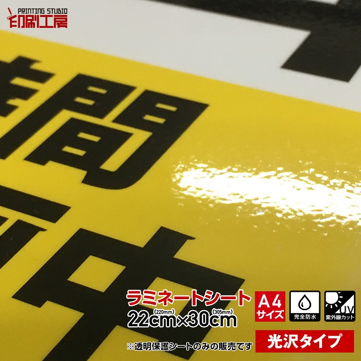 ラミネートシート A4サイズ 5枚セット【ツヤありグロスタイプ】ステッカーなどを保護するラミネートシートのツヤありグロスタイプです。UVカット率99%でステッカーの色あせを防ぎ、水がついてプリンタのインクが溶け出すのを防ぎます。特徴◆ステッカーの上にラミネート加工をすれば水にぬれても平気、UVカット率99%で色あせにも強い!◆ツヤありのグロスタイプです。 仕様◆サイズ:A4サイズ 220mm×300mmステッカー 車ステッカー スノーボードステッカー ラミネート シール 防水