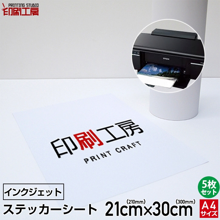 ステッカーシート+ラミネートシート A4サイズ各5枚セット『インクジェット用』『ステッカー 作成』『透明保護フィルム付き』『印刷工房』