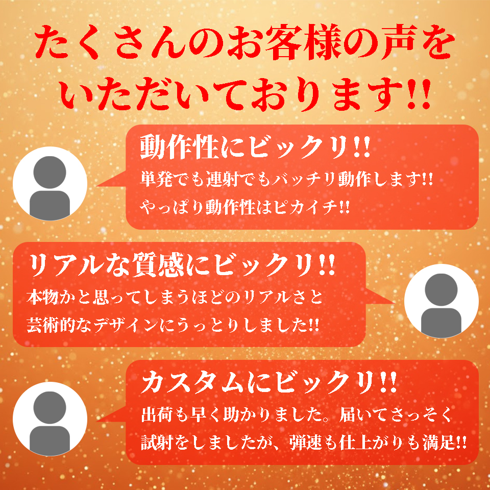 基本スペックが素晴らしく高く、作動も今までのブローバックライフルとは全く違う、電動ガンと同じ程度の連射能力を持つ。
