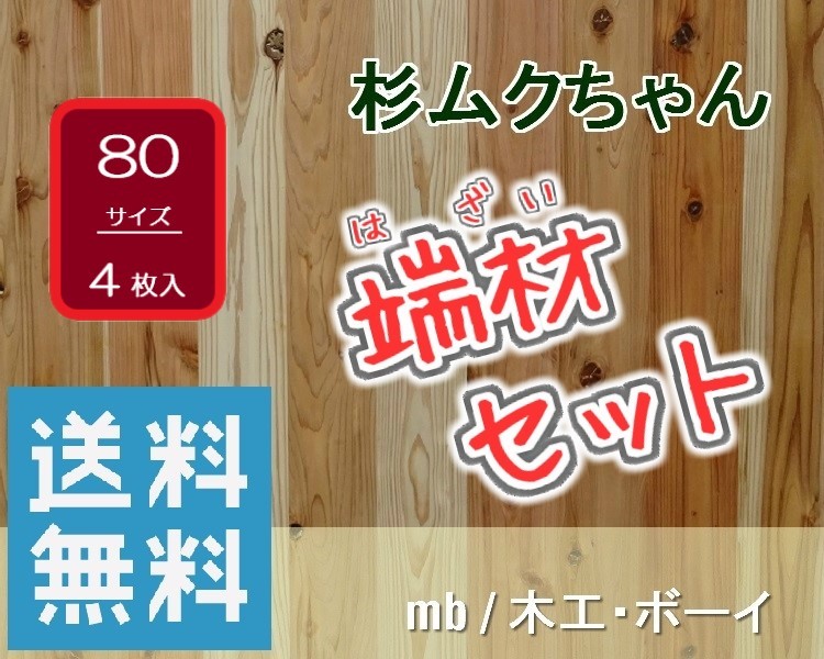 | ※ ご注意点 ※ ▲ 同じ厚みの板が、4枚入り1セットとなります。 ご希望の厚みをお選びください。 ▲ 明記してあります寸法は、運送会社の梱包サイズをもとに算出した目安となります。 梱包サイズ(三辺の長さの合計)を、80cm以下にまとめてお送りいたします。 60サイズ・100サイズシリーズもご用意しております。 ▲ 寸法に関してご要望がございましたら、オプション項目欄、もしくは備考欄等に明記ください。 可能な限り、対応させていただきます。 例えば… できるだけ大きさのそろったもの希望。 細長いものを希望。 真四角に近いものがいい。 240×300が1枚は欲しい。 ※ 寸法カットは基本的にお受けできないものとお考え下さい。 ※ 端材の在庫状況等により、ご希望に添えない場合もございます。 ▲ 250mm×250mm以上のサイズのものは、既製品販売しておりますので、 端材セットではお受けできません。 ▲ 杉ムクちゃんは、節がある商品になります。 抜け節もある場合がございます。 ※ 杉ムクちゃんのページをご参照ください。 ▲ 商品は、簡易包装にて発送させていただきます。 ▲ 数に限りがございます。 売切れ、売違いの際はご容赦ください。 ▲ 返品交換はできませんので、ご了承ください。
