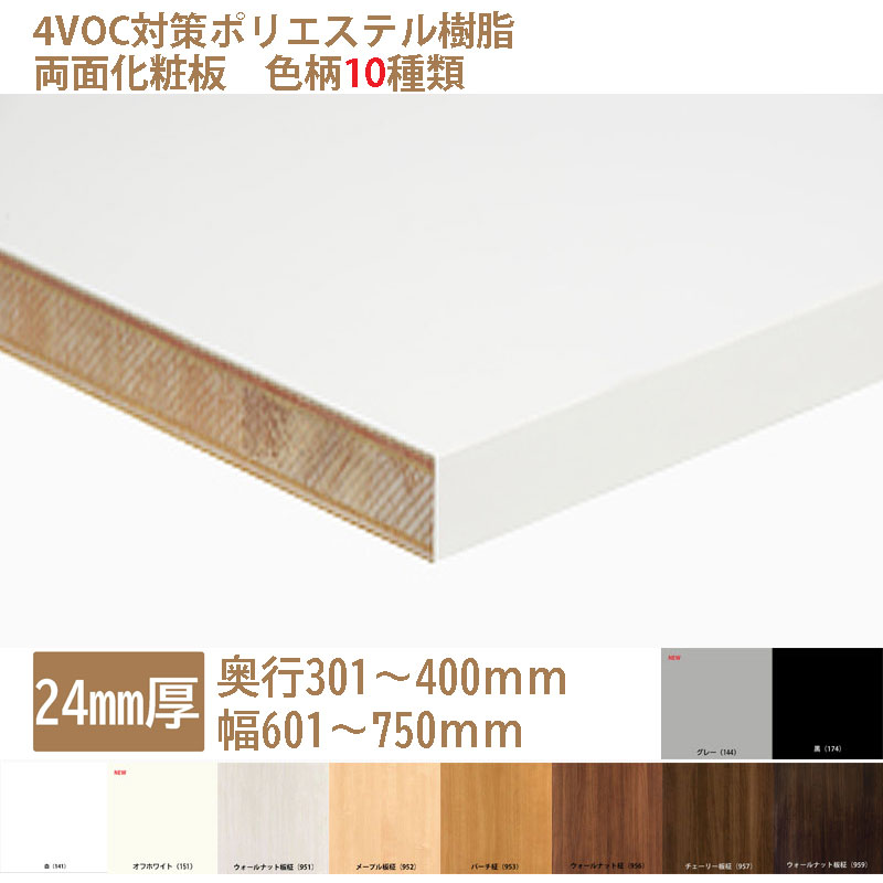 棚板 カラー化粧板 木材 DIY 24mm厚 奥行301〜400 幅601〜750 白・黒・他8種 オーダーカット ランバーポリ
