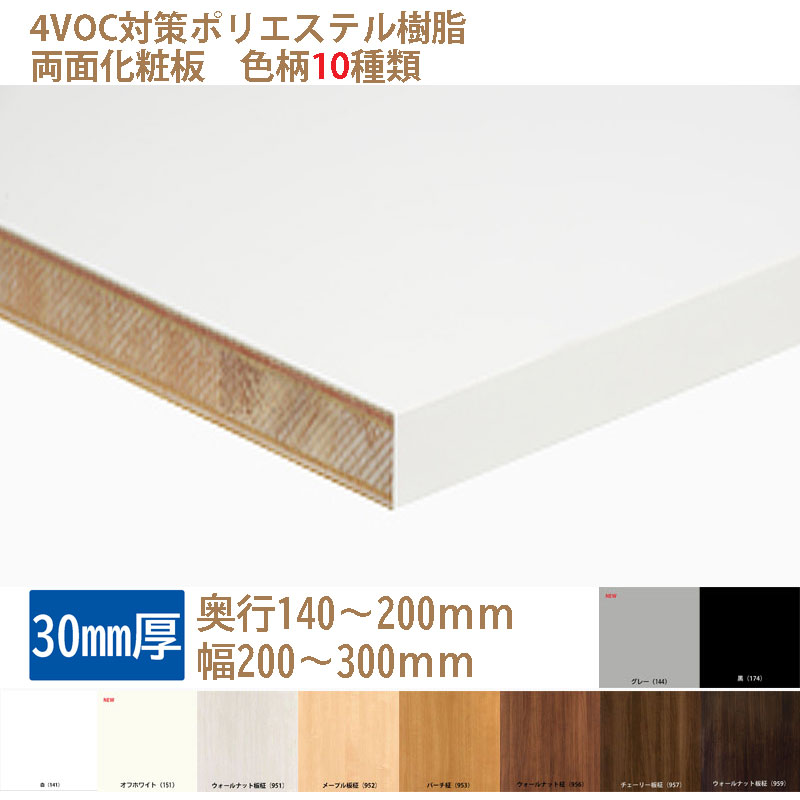 棚板 カラー化粧板 木材 DIY 30mm厚 奥行140〜200 幅200〜300 白・黒・他8種 オーダーカット ランバーポリ