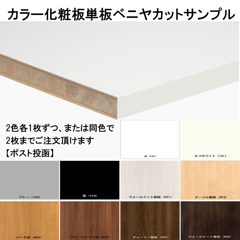 棚板 カラー化粧板 単板貼りベニヤ カットサンプル 2枚まで 木材 DIY