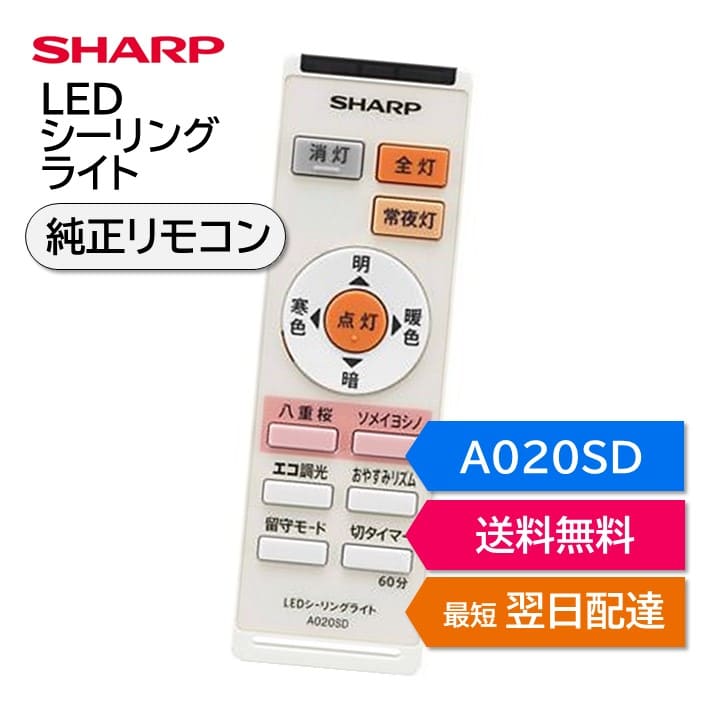 シャープ LEDシーリングライト 照明 純正リモコン A020SD A015SD SHARP 天井 部屋 LED照明 リモコン 2866380012 DL-C206V DL-C506V DL-C406V など
