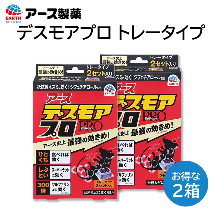 アース デスモアプロ トレータイプ 2箱 ネズミ駆除 防止 エサ剤 家庭用殺鼠剤 そのまま置ける 1度食べるだけで効く