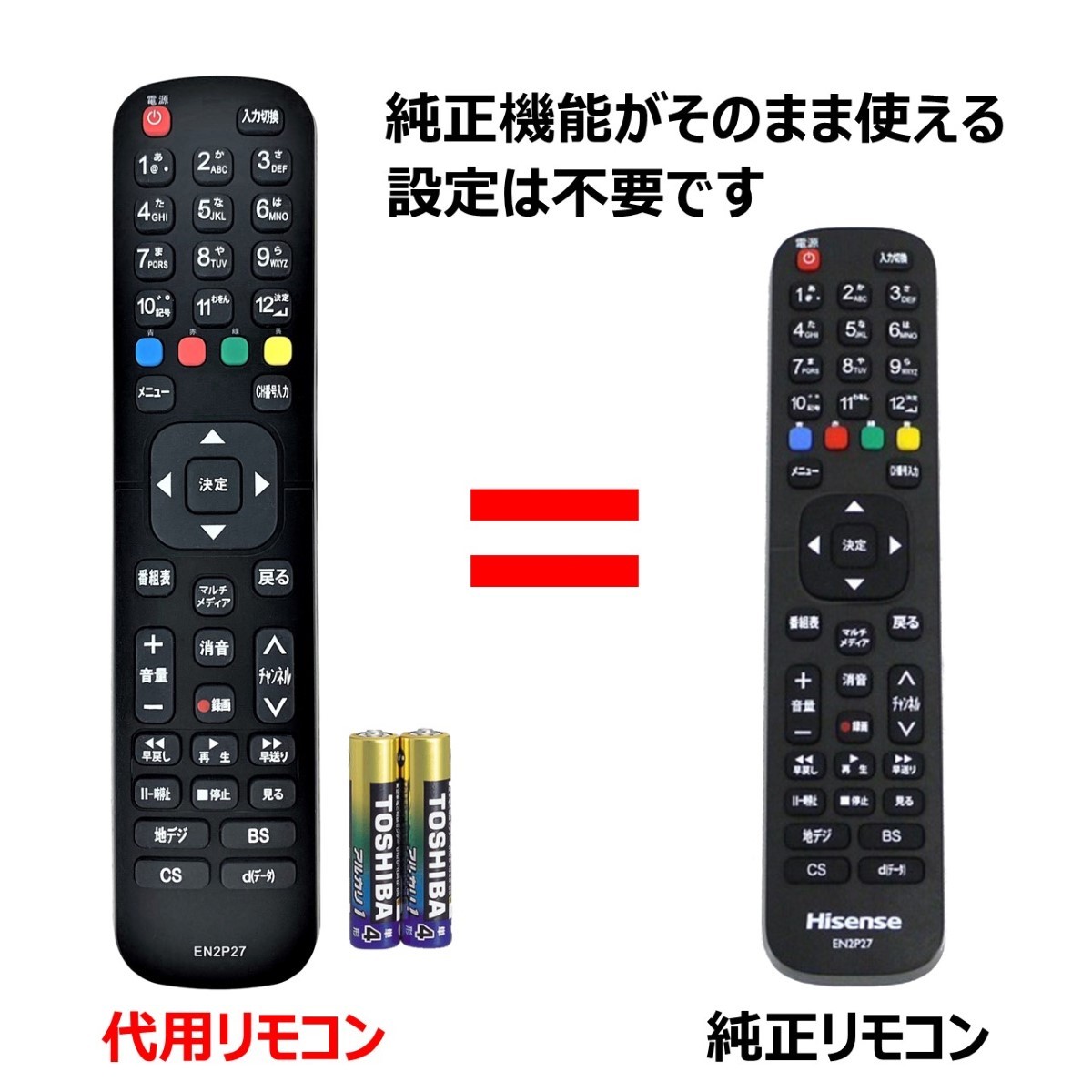 互換品 ハイセンス リモコン EN-2P27 電池付き HJ43K300U HJ50K323U Hisense 代用リモコン リスタ