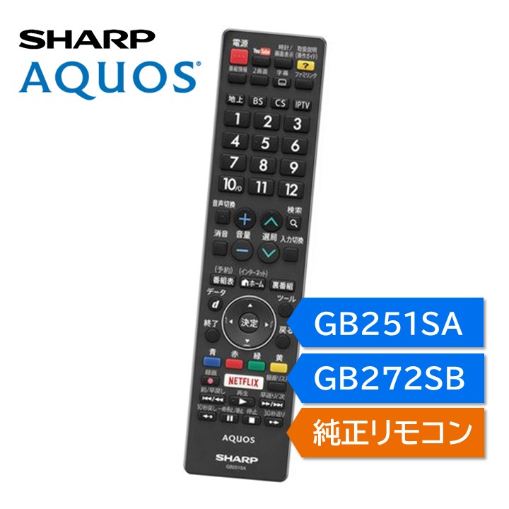シャープ アクオス テレビ 純正リモコン GB251SA GB272SB SHARP AQUOS リモコン 0106380524 0106380567 LC-32W5 LC-40U45 40W5 45US45 など