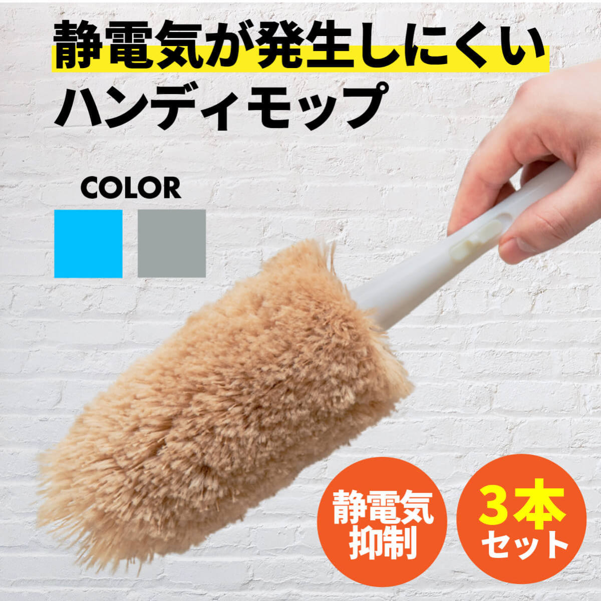 ハンディモップ 3本セット ダスター モップ ほこり取り はたき 静電気抑制 マイクロファイバー 洗える フック ポイント消化 ホワイト ブラウン グレー ブルー