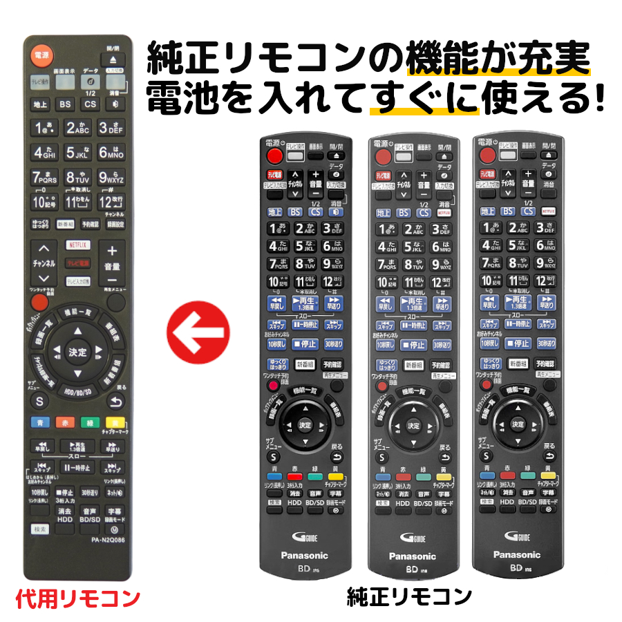 互換品 パナソニック ブルーレイ ディーガ リモコン N2QAYB001086 N2QAYB001071 N2QAYB001142 N2QAYB001087 N2QAYB001143 DMR- レコーダー リモコン