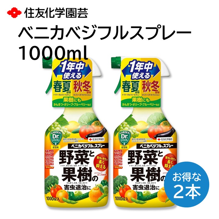 ベニカベジフルスプレー 1000ml 2本セット 殺虫剤 野菜 果樹 害虫退治 発生を抑える アオムシ アブラムシ ハモグリガ コガネムシ カメムシ など 住友化学園芸