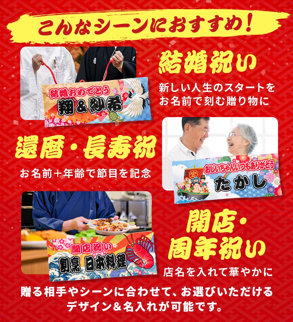 全面名入れタオル お祝いタオル 名前入り 1枚から オリジナルタオル 還暦祝い 周年記念 結婚祝い 敬老の日 長寿祝い 開店祝い 合格祝い 入学祝い 出産祝い
