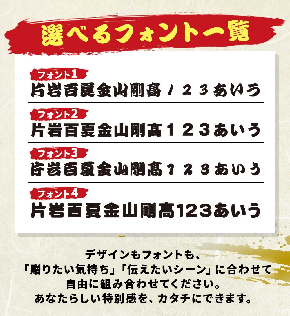 6種のデザインから選んで文字を指定するだけで簡単作成!