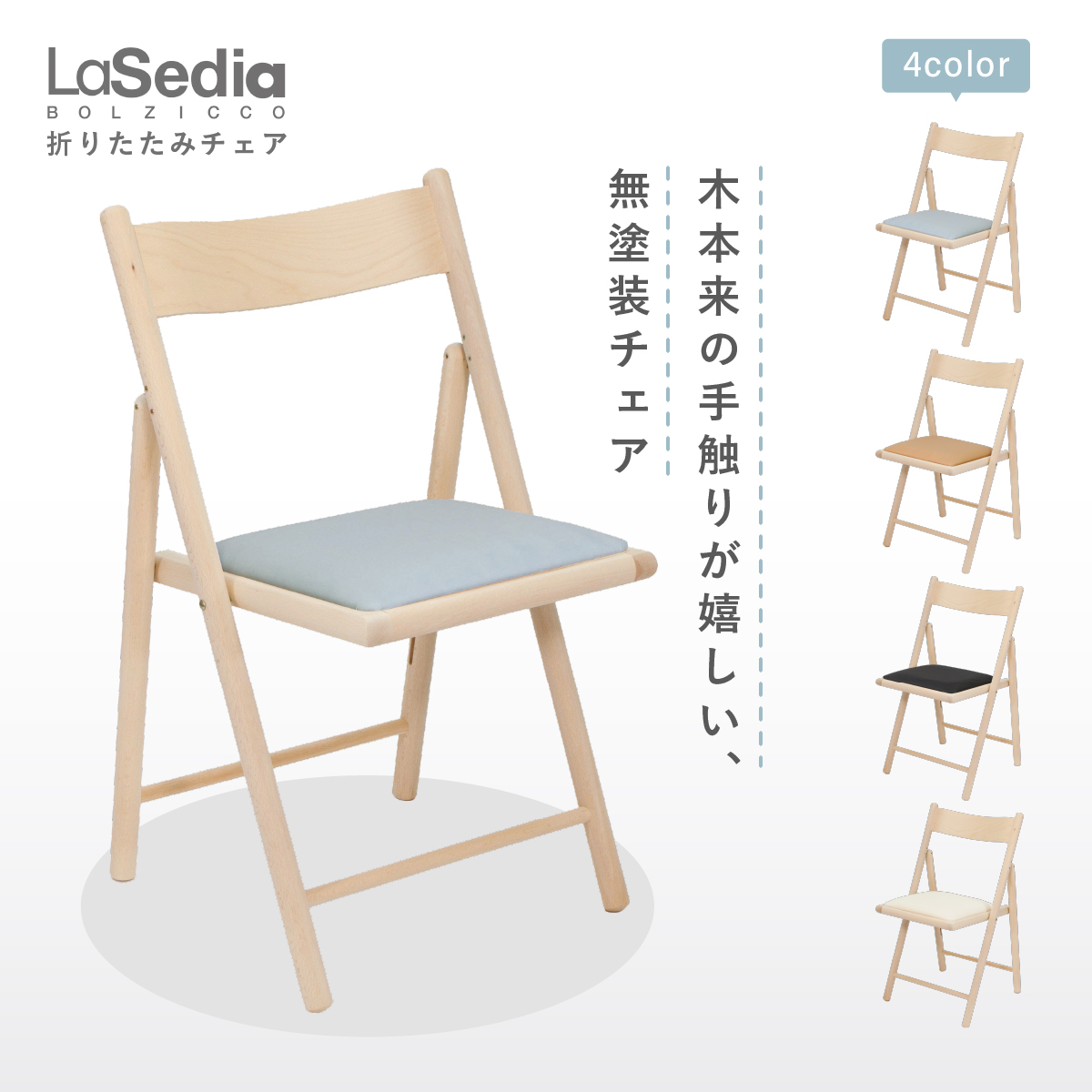 ●イタリアの老舗木工家具メーカー「La Sedia(ラ・セディア)社」による、木製折りたたみチェアです。 ●座面は、程よい硬さのクッションで折り畳みチェアらしからぬ快適な座り心地となっており、長く座っていても疲れを感じにくいです。 ●軽くて丈夫なので女性でも持ち運びしやすく、折り畳めば厚さ10cmになって省スペースで収納が可能です。 ●フレームにはブナ無垢材を使用しているので”木”本来の質感や木目の美しさを存分に味わうことができ、使えば使うほど味がでて経年変化も楽しめます。 ●組立不要の完成品ですので、お届け後すぐにお使いいただけます。 ●アンフィニッシュは完全に無塗装のフレームですので、DIYで好きな色に着色してお楽しみいただけます。 |