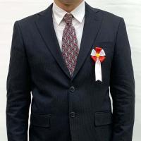◆使い方としては、来賓客に赤色のリボン記章・主催者側は白色のリボン記章と色で格を付けたり、来賓客に大リボンバラ記章・主催者側は小リボンバラ記章と大きさで格を付けたりします。