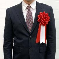 ◆使い方としては、来賓客に赤色のリボン記章・主催者側は白色のリボン記章と色で格を付けたり、来賓客に大リボンバラ記章・主催者側は小リボンバラ記章と大きさで格を付けたりします。
