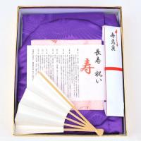 紫色のちゃんちゃんこ・帽子・白扇1本・風呂敷の長寿祝いのセットとなります。