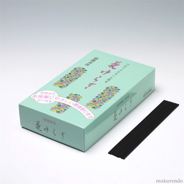 超小煙香・超微香性。当店で取り扱っております中で、もっとも煙が少ないお線香がこちらの「花ゆらぎ」です。香りはソフトなフローラル系で、とても控えめです。