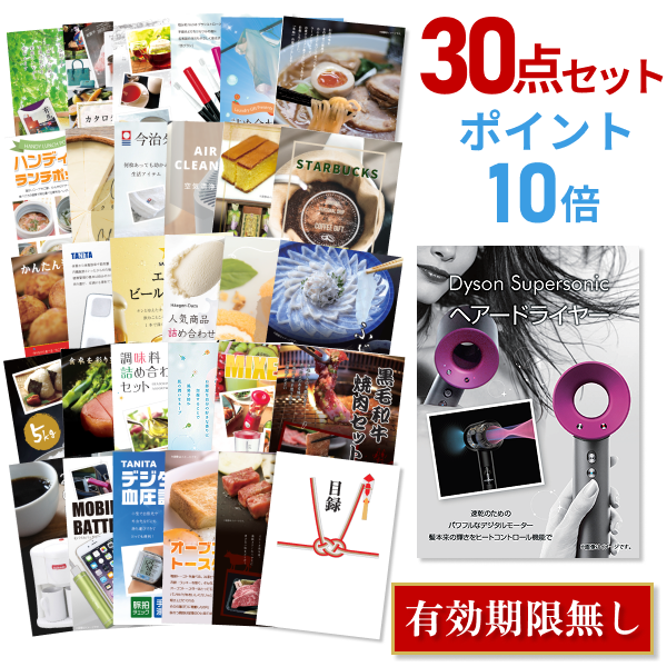 ポイント10倍 景品 新年会 二次会 ダイソン ドライヤー Dyson Supersonic おまかせ 30点セット 目録 A3パネル QUO千円 DSS30_Q1_P10 QR申込