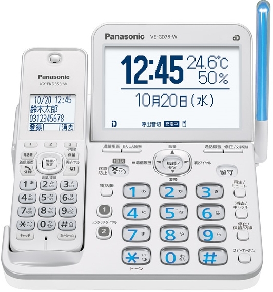 パナソニック 受話器コードレスタイプ 大画面 熱中症アラート VE-GD78-W(親機のみ子機なし) 留守番 電話機 特殊詐欺、迷惑電話防止搭載 ナンバーディスプレイ