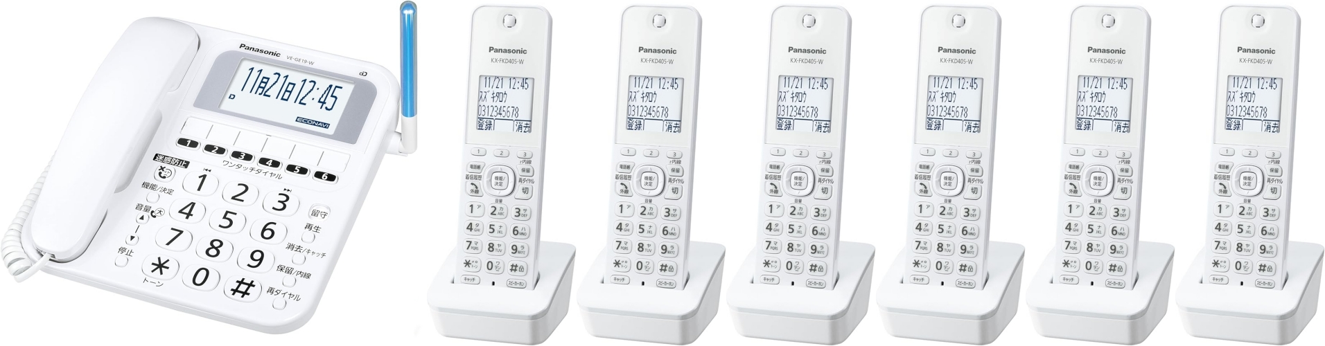 子機6台付 パナソニック 留守番 電話機 迷惑電話防止搭載 ナンバーディスプレイ VE-GE19DL-W子機1付+増設子機5台 留守録