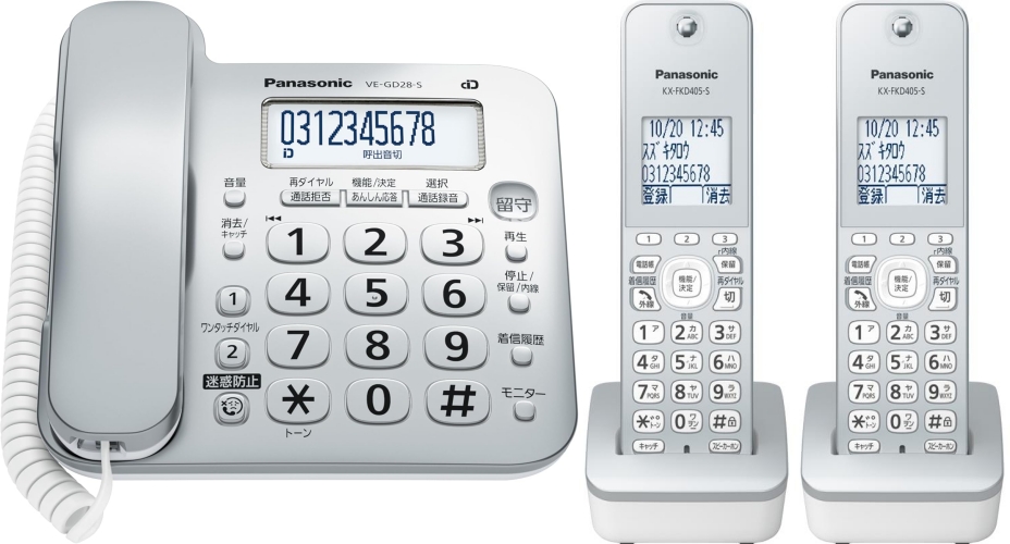 子機2台付 パナソニック コードレス 留守番 電話機 VE-GD28(子機1台付)+増設子機1台 特殊詐欺防犯、迷惑電話対策搭載!ナンバーディスプレイ