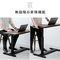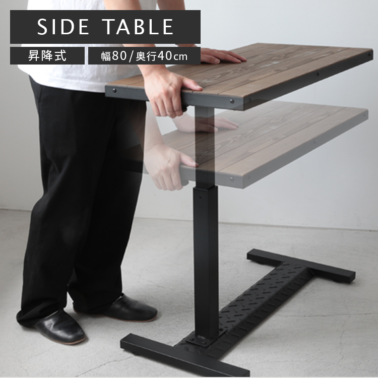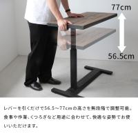 昇降デスク ビンテージ風パイン昇降テーブル 昇降式 無垢材天板 ガス圧式 キャスター付き サイドテーブル 介護 ベッド ベットルーム リビング ソファ