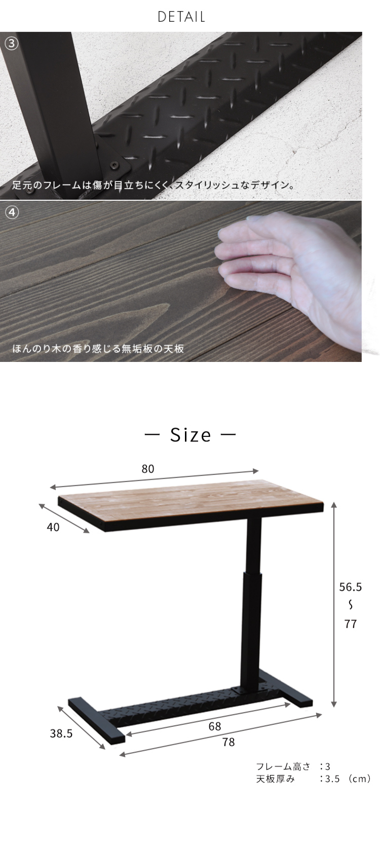 天板サイズ:幅80×奥行40×厚み3.5(cm)
