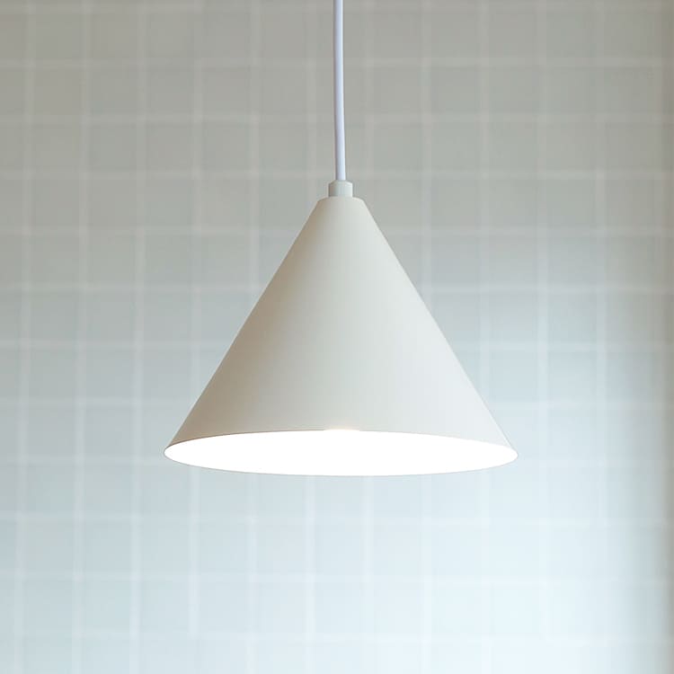 とんがり帽子のような三角形のフォルムでスッキリとした見た目の中に、どこか可愛らしさが漂うおしゃれなペンダントライトです。