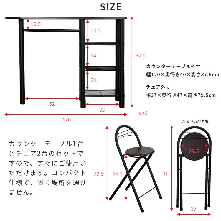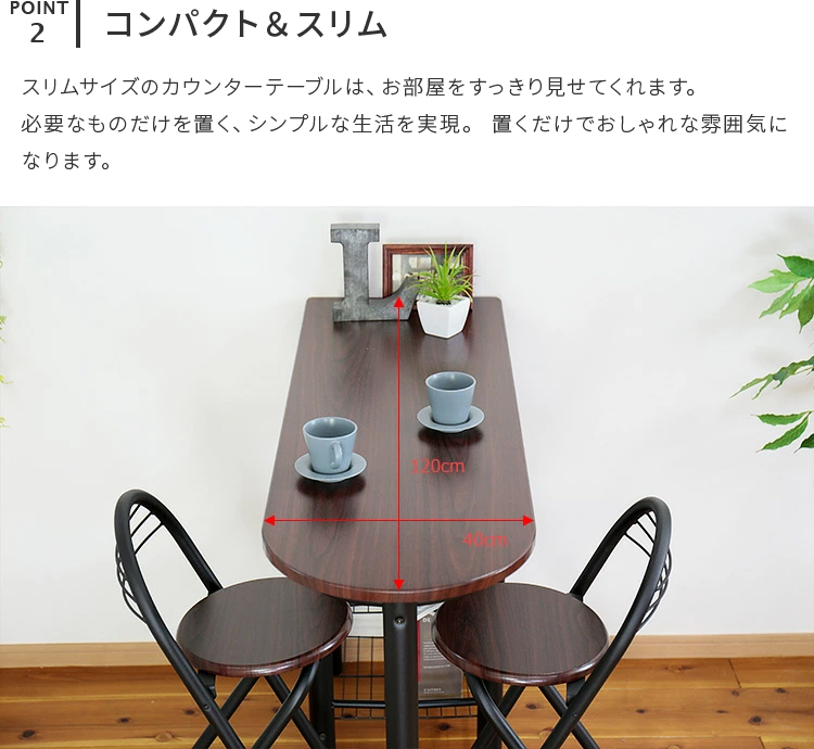カウンターテーブル チェア 2脚セット 幅120cm 折りたたみ 3点セット バーテーブル カフェテーブル おしゃれ シンプル リビング ダイニング ダイニングセット