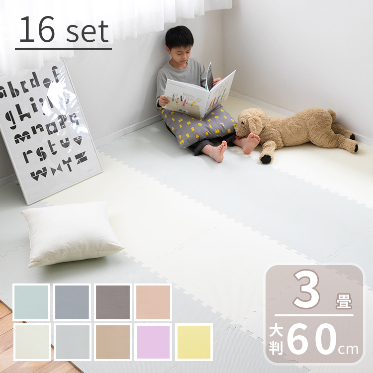ジョイントマット 大判 3畳 16枚 おしゃれ 赤ちゃん 60cm 北欧 掃除 プレイマット フロアマット パズルマット ベビー キッズ グレー 床 ベビーマット 床暖